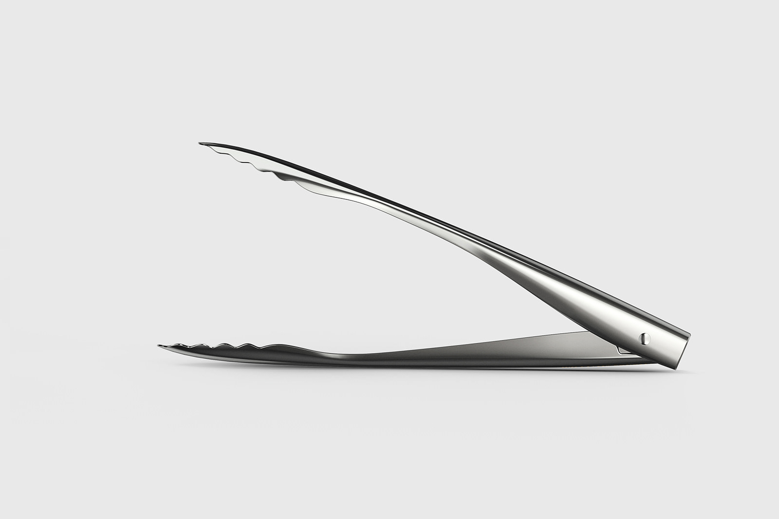 Crafted from stainless steel, ergonomically contoured, and weighted for perfect balance and precise control. The stainless steel tong is designed with exceptional focus on surface continuity that is highlighted throughout its high polished stainless steel surface.